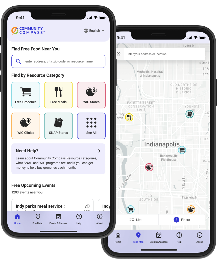 One of the problems facing people who are food insecure is knowing where to turn for assistance. Finding nutritious, readily available food shouldn’t be hard. That’s why we created Community Compass — a free, quick, and easy tool designed to show people where they can find food assistance in Indiana.